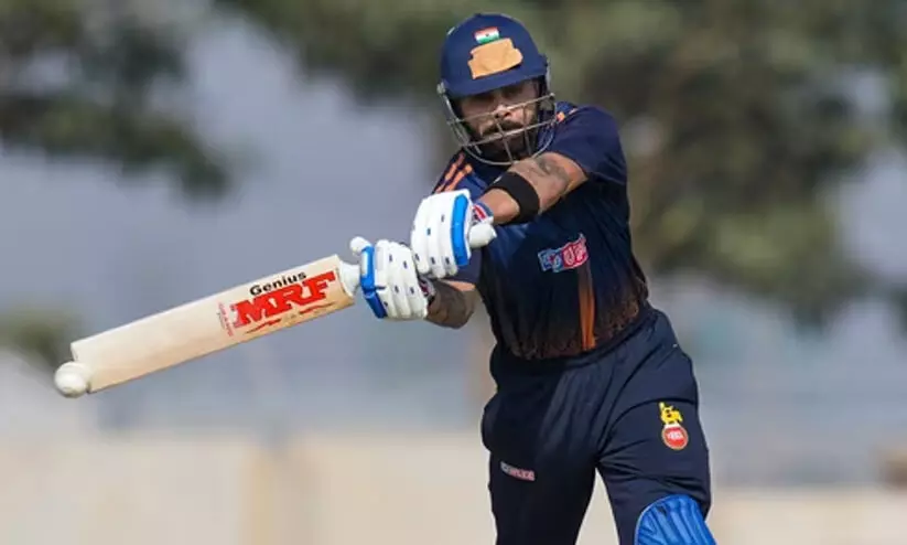 സൂപ്പർ താരം വിരാട് കോഹ്ലി തകർപ്പൻ അർധ സെഞ്ച്വറി നേടിയാണ് പുറത്തായത്. ഗുജറാത്തിനെതിരെ കോഹ്ലി 61 പന്തിൽ ഒരു സിക്സും 13 ഫോറുമടക്കം 77 റൺസെടുത്തു. വിശാൽ ജയ്സ്വാളിന്‍റെ പന്തിൽ വിക്കറ്റ് കീപ്പർ ഉർവിൽ പട്ടേൽ സ്റ്റമ്പ് ചെയ്താണ് താരത്തെ പുറത്താക്കിയത്. ഏകദിന ഫോർമാറ്റിൽ തുടർച്ചയായി ആറാം തവണയാണ് താരം 50 പ്ലസ് സ്കോർ നേടുന്നത്. ആന്ധ്രപ്രദേശിനെതിരായ ആദ്യ മത്സരത്തിൽ 101 പന്തുകൾ നേരിട്ട കോഹ്‌ലി 14 ഫോറും മൂന്നു സിക്സും ഉൾപ്പടെ 131 റൺസെടുത്തിരുന്നു. ടോസ് നഷ്ടപ്പെട്ട് ബാറ്റിങ്ങിനിറങ്ങിയ ഡൽഹി നിലവിൽ 25 ഓവറിൽ നാലു വിക്കറ്റ് നഷ്ടത്തിൽ 113 റൺസെടുത്തിട്ടുണ്ട്. പ്രിയാൻഷ് ആര്യ (ഏഴു പന്തിൽ ഒന്ന്), അർപിത് റാണ (31 പന്തിൽ 10), നിതീഷ് റാണ (22 പന്തിൽ 12) എന്നിവരാണ് പുറത്തായ മറ്റു താരങ്ങൾ. ഋഷഭ് പന്ത് (19 പന്തിൽ ഏഴ്), ആയുഷ് ബദോനി (10 പന്തിൽ മൂന്ന്) എന്നിവരാണ് ക്രീസിലുള്ളത്.