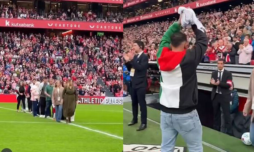 ഫലസ്തീനിയൻ അഭയാർഥികൾക്ക് സ്റ്റേഡിയത്തിൽ സ്വീകരണമൊരുക്കി ലാ ലീഗ ക്ലബ്. അത്‍ലറ്റി​കോ ബിൽബാവോയാണ് ഔദ്യോഗികമായി ഫലസ്തീനിയൻ അഭയാർഥികൾക്ക് ആദരമൊരുക്കിയത്. ബാസ്ക്യു കൺട്രിയിൽ നിന്ന് സാൻ മാംസിലെ സ്റ്റേഡിയത്തിലേക്കാണ് അവ​രെ സ്വാഗതം ചെയ്തത്. മാല്ലോർക്കയുമായുള്ള മത്സരത്തിന് മുന്നോടിയായിട്ടായിരുന്നു ഫലസ്തീൻ അഭയാർഥികൾക്കുള്ള ആദരം. എഴുന്നേറ്റ് നിന്ന് കൈയടികളോടെയാണ് ഫലസ്തീൻ അഭയാർഥികളെ കാണികൾ വരവേറ്റത്.