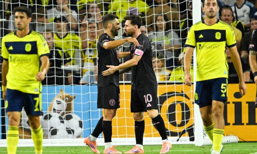നാഷ്വില്ലയുടെ തട്ടകമായ ജിയോഡിസ് പാർക്കിൽ നടന്ന മത്സരത്തിൽ 35ാം മിനിറ്റിൽ മെസ്സിയിലൂടെ മയാമിയാണ് ആദ്യം ലീഡെടുത്തത്. ബോക്സിന് തൊട്ടുപുറത്തുനിന്നുള്ള താരത്തിന്റെ ഷോട്ടാണ് ഗോളിയെയും കീഴ്പ്പെടുത്തി ലക്ഷ്യത്തിലെത്തിയത്. ഇടവേളക്കു പിരിയാൻ രണ്ടു മിനിറ്റ് മാത്രം ബാക്കി നിൽക്കെ സാം സറിഡ്ജ് ഹെഡ്ഡറിലൂടെ ആതിഥേയരെ ഒപ്പമെത്തിച്ചു. ഇടവേളയുടെ ഇൻജുറി ടൈമിന്റെ അവസാന മിനിറ്റിൽ മയാമിയെ ഞെട്ടിച്ച് ഷാഫെൽബർഗ് നാഷ്വിയെ മുന്നിലെത്തിച്ചു.